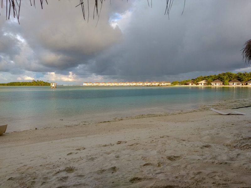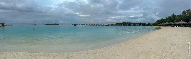 Eine weitere Sache die mich überrascht hat war der ewig lange Steg zum Wasserbungalow. Auch wenn das auf den Bildern gar nicht so weit aussieht, der Gang ist schon ein Stück. Bei manchen dürften da viele hundert Meter zusammenkommen. Nun kommt man plötzlich doch noch zu seinem Sport. Unter anderem weil die Lagune im inneren der Insel ein Traum von Strand war und irgendwie mehr Glücksgefühle erzeugte als der Privatstrand unter der Leiter. Und so fing das große Laufen an. Hin und Her….